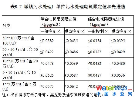 城鎮(zhèn)污水處理能耗限額限定值和先進(jìn)值見(jiàn)表3.0.2。