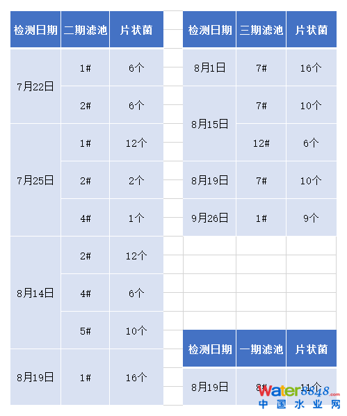 表4:某水廠回用水中片狀菌檢出情況