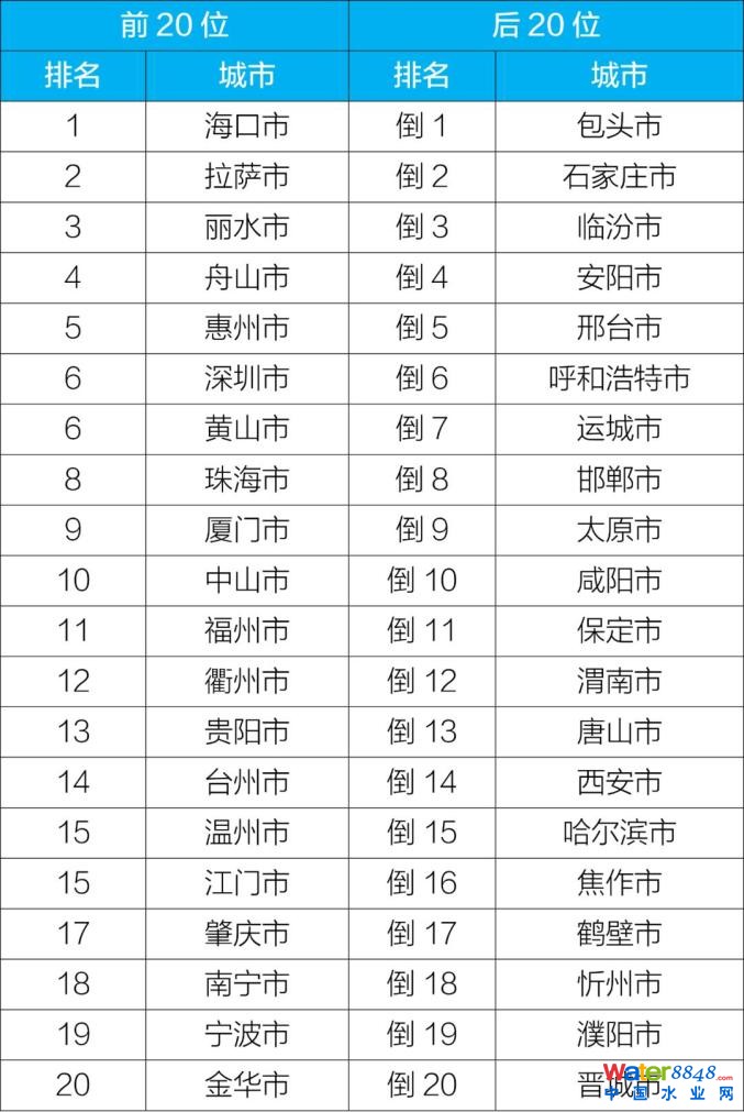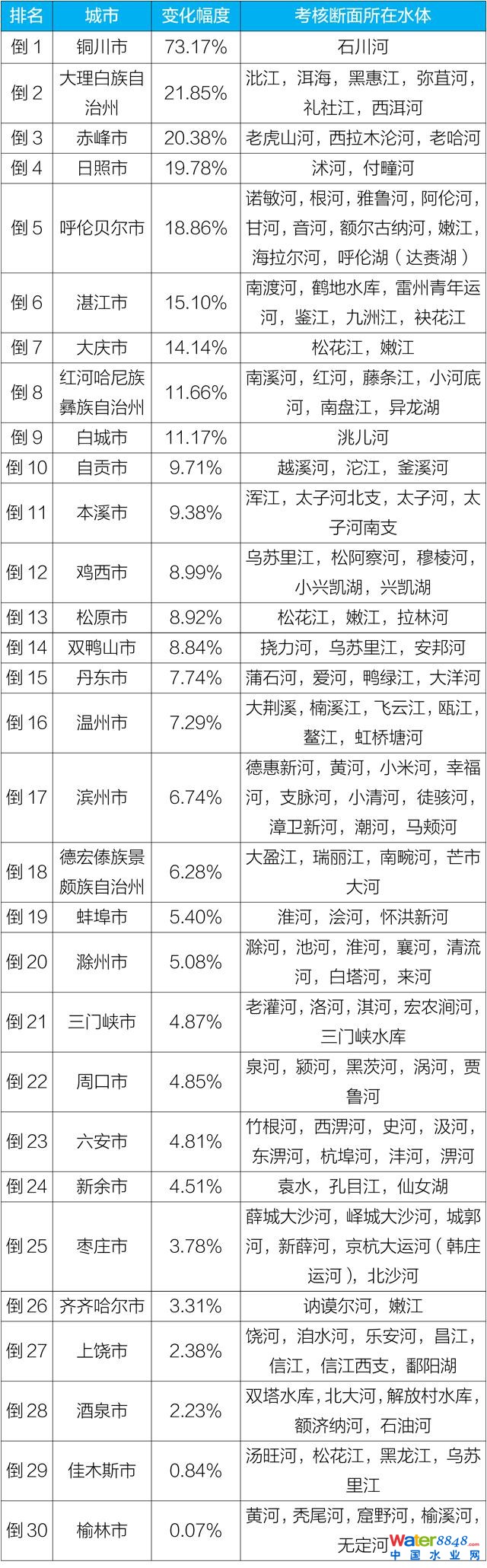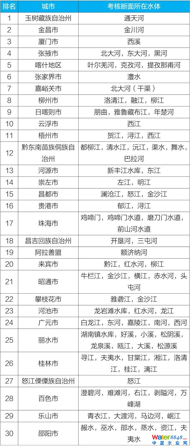 地級(jí)及以上城市國(guó)家地表水考核斷面排名