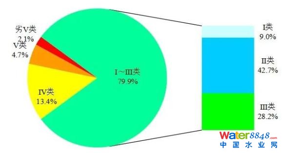 圖2 2020年1-3月全國(guó)地表水水質(zhì)類別比例