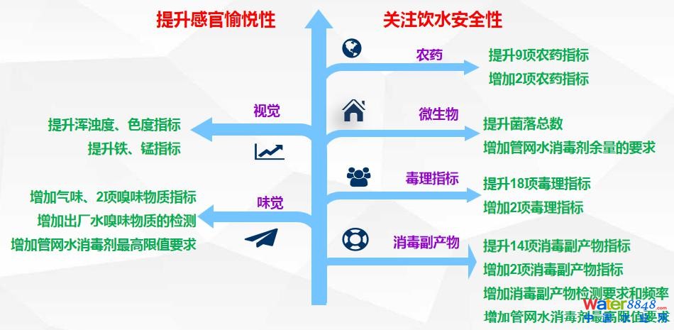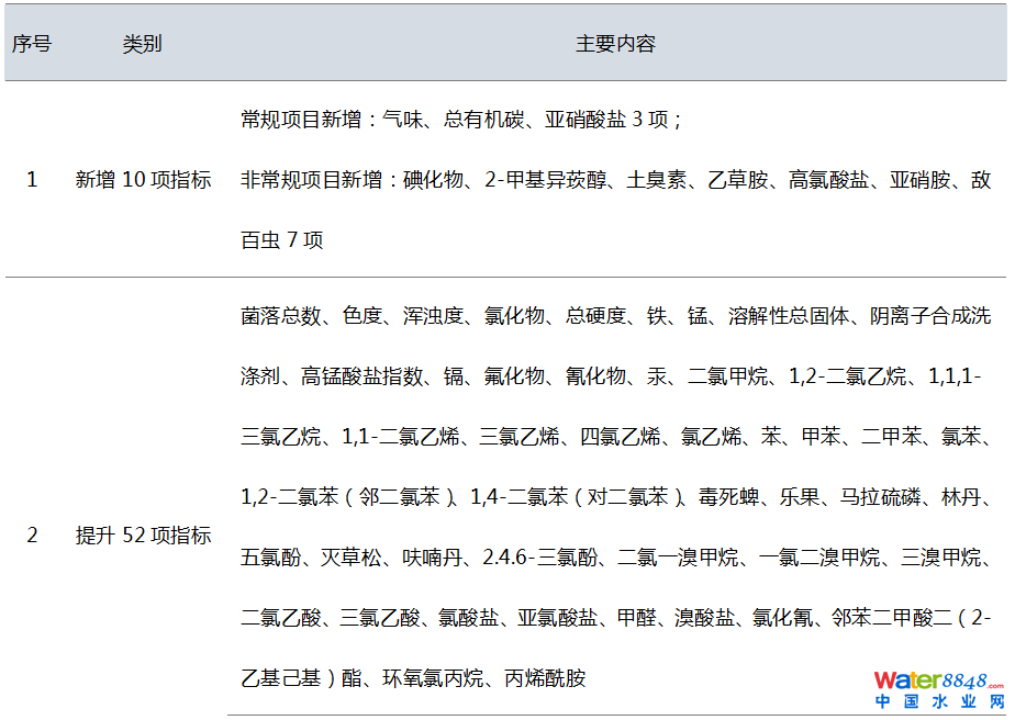 該標準對標世界衛(wèi)生組織(WHO)、歐盟、美國、日本等先進飲用水水質(zhì)標準,結(jié)合我市水質(zhì)特點,提出了適應我市的供水水質(zhì)指標和限值,并對水質(zhì)管控提出要求, 標準包含水質(zhì)指標116項,其中常規(guī)指標52項,非常規(guī)指標64項。