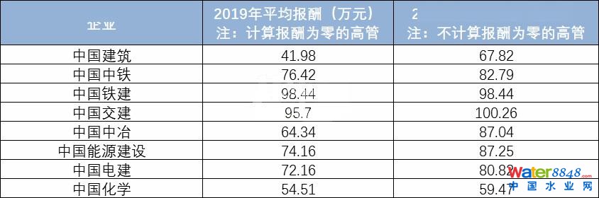 如果將報酬為零的高管加入平均值計算的話,2019年8大建筑央企平均報酬最高的是 中國鐵建,達到98.44萬元,不將報酬為零的高管加入平均值計算的話,平均報酬最高的就是 中國交建,達到100.26萬元