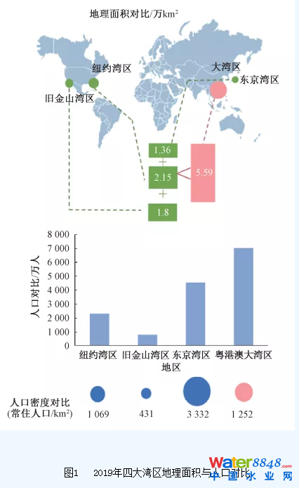 圖1  2019年四大灣區(qū)地理面積與人口對比
