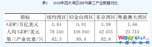 表1  2019年四大灣區(qū)GDP與第三產(chǎn)業(yè)數(shù)據(jù)對比