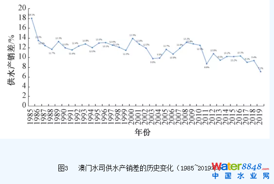 圖3  澳門水司供水產(chǎn)銷差的歷史變化(1985~2019年)