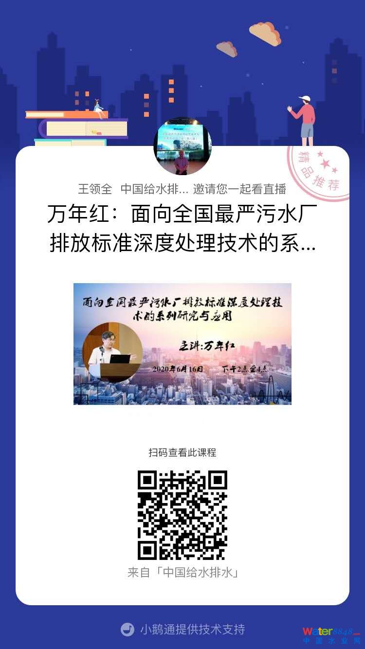 直播:中南市政設(shè)計(jì)研究總院  萬(wàn)年紅  副總工:面向全國(guó)最嚴(yán)污水廠排放標(biāo)準(zhǔn)深度處理技術(shù)的系列研究與應(yīng)用