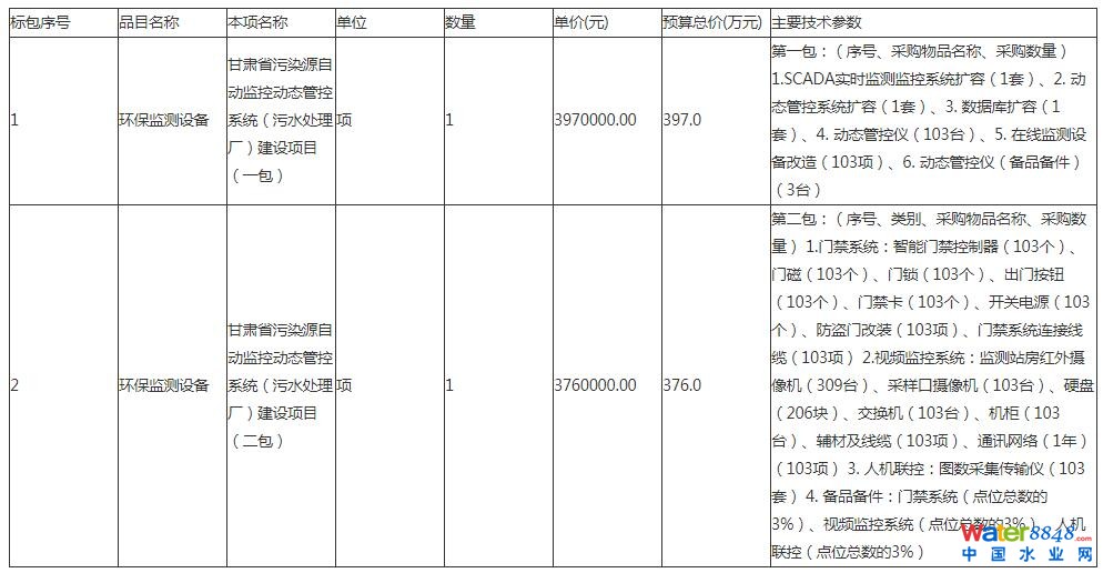 項(xiàng)目總預(yù)算 773.0萬元 甘肅省生態(tài)環(huán)境調(diào)查中心甘肅省污染源自動監(jiān)控動態(tài)管控系統(tǒng)(污水處理廠)建設(shè)項(xiàng)目公開招標(biāo)公告