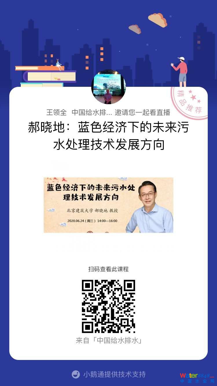 直播講座|郝曉地:藍色經濟下的未來污水處理技術發(fā)展方向 (北京建筑大學全職講席教授,博士生導師,主要從事污水處理教學與科研工作。2001年10月獲得荷蘭代爾夫特理工大學(TU Delft)博士(P