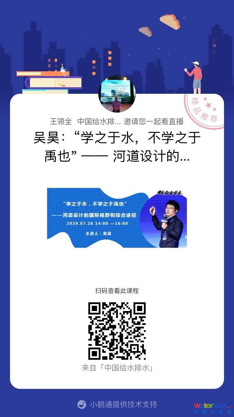 題目:學(xué)之于水,不學(xué)之于禹也---河道設(shè)計(jì)的國(guó)際視野和綜合途徑  主講人:吳昊      直播時(shí)間 2020年7月28日 14-16點(diǎn)