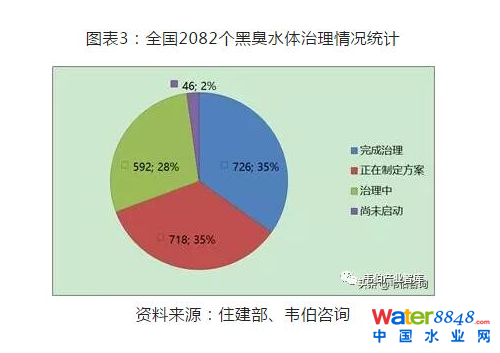 城市黑臭水體形成主要原因是有機物污染,城市建成區(qū)是黑臭水體的重災(zāi)區(qū),而河湖管理保護又是一項復(fù)雜的系統(tǒng)工程。2016年12月,中共中央、國務(wù)院印發(fā)《關(guān)于全面推行河長制的意見》,要求由黨政領(lǐng)導(dǎo)擔(dān)任河長,依法依規(guī)落實地方主體責(zé)任,協(xié)調(diào)整合各方力量,加快推進水資源保護、水域岸線管理、水污染防治、水環(huán)境治理等工作。依據(jù)住建部全國城市黑臭水體整治監(jiān)管平臺披露數(shù)據(jù),截止2019年4月,全國已認定責(zé)任人的水體數(shù)量合計2082個,其中完成治理的726個,治理中的592個,正在制定方案的718個,尚未啟動的46個。