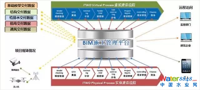 為保證模型信息的傳遞性與共享性,真正實現(xiàn)BIM全流程應用價值,中冶南方定制開發(fā)綜合管廊BIM5D施工管理平臺。將設計階段各專業(yè)交付數(shù)據(jù)導入BIM 5D平臺,通過模型分析與拆分、計量計價施工管理,進行虛擬施工,預演現(xiàn)場施工作業(yè)。并與監(jiān)控、無人機等設備拍攝的項目現(xiàn)場情況進行對比,智能管理管廊施工,隨時發(fā)現(xiàn)并及時解決施工過程中存在的問題,保證施工進度,控制施工成本。同時,監(jiān)管部門、建筑企業(yè)、工人等項目參與各方,可利用手持端,對云平臺數(shù)據(jù)進行遠程查詢與訪問。
