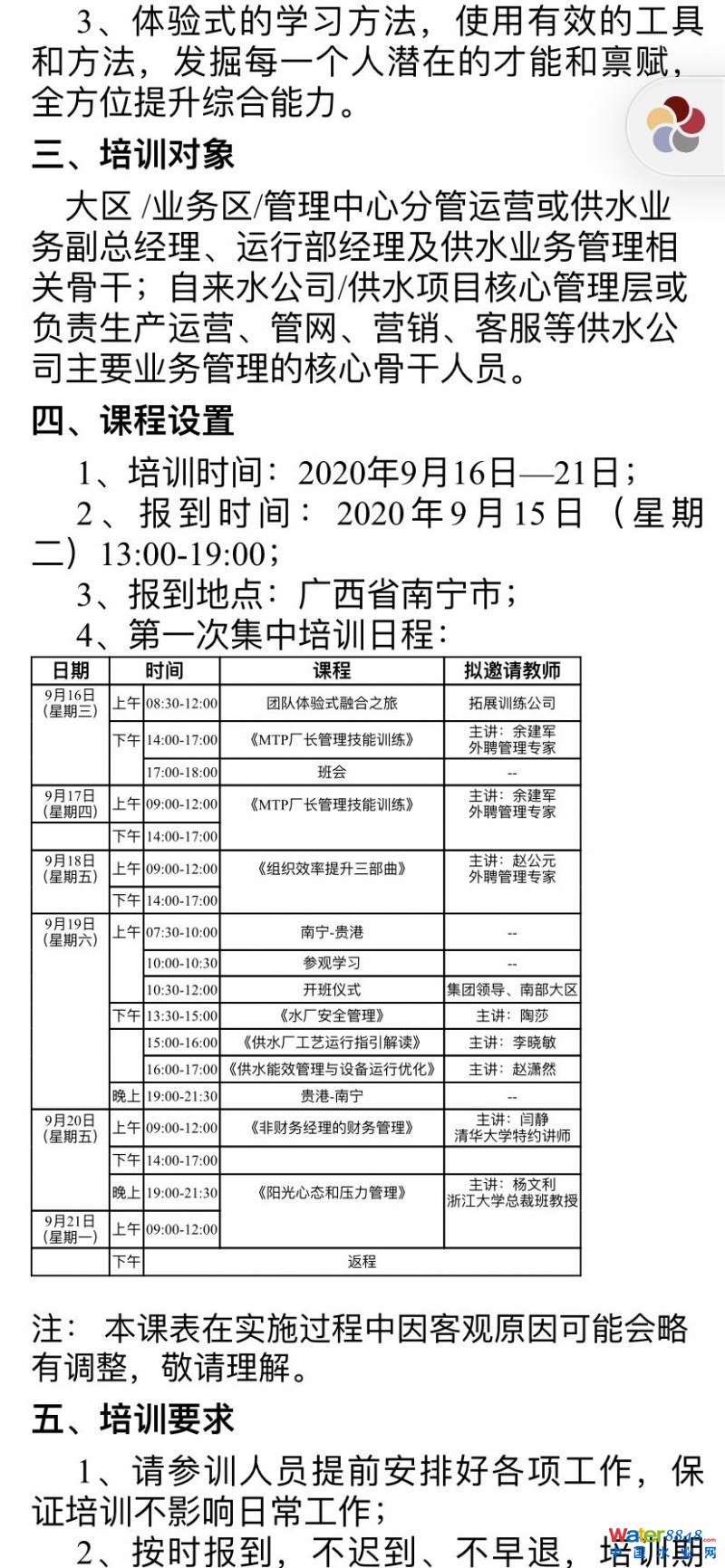招生對(duì)象:供水公司中高層管理人員、運(yùn)營(yíng)經(jīng)理及負(fù)責(zé)生產(chǎn)經(jīng)營(yíng)活動(dòng)的核心骨干。