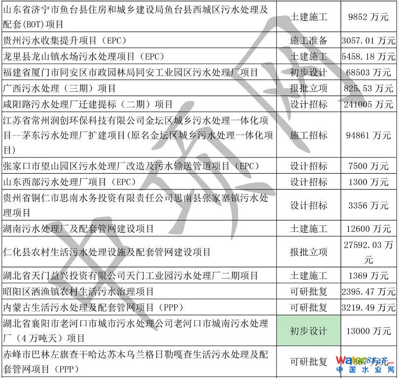 中項網(wǎng)權(quán)威發(fā)布8月份生活污水處理項目