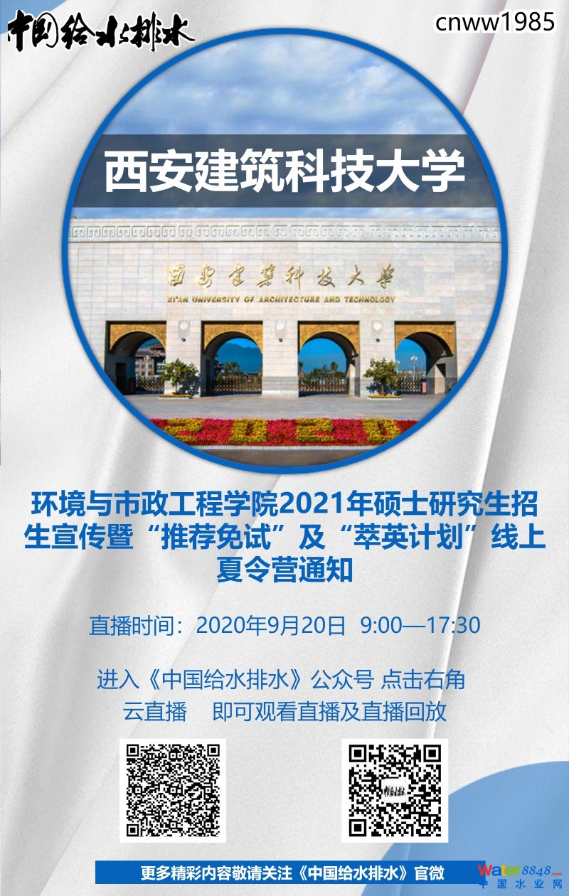西安建筑科技大學(xué) 環(huán)境與市政工程學(xué)院2021年碩士研究生招生宣傳 暨“推薦免試”及“萃英計(jì)劃”線上夏令營通知 直播時(shí)間:2020年9月20日 09:00—17:30 2020.09.20 09:00