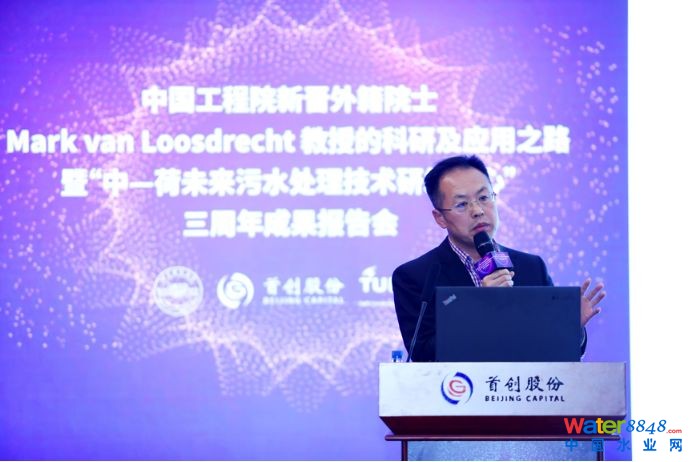 2019年11月30日下午,中國工程院新晉外籍院士Mark van Loosdrecht(馬克·梵·洛斯德萊特)教授的科研及應用之路暨“中-荷未來污水處理技術研發(fā)中心”(以下簡稱“中-荷研發(fā)中心”)三周年成果報告會在北京舉行。荷蘭代爾夫特理工大學教授馬克·梵·洛斯德萊特,中國城鎮(zhèn)供水排水協(xié)會會長、秘書長章林偉,北京建筑大學校長張愛林,副校長張大玉,中國市政華北院總經(jīng)理吳凡松,首創(chuàng)集團副總經(jīng)理、首創(chuàng)股份董事長劉永政,首創(chuàng)股份總經(jīng)理楊斌,副總經(jīng)理江瀚,北京建筑大學環(huán)能工程學院教授郝曉地、北京“未來城市設計高精尖中心”主任李雪華等出席并發(fā)表演講。