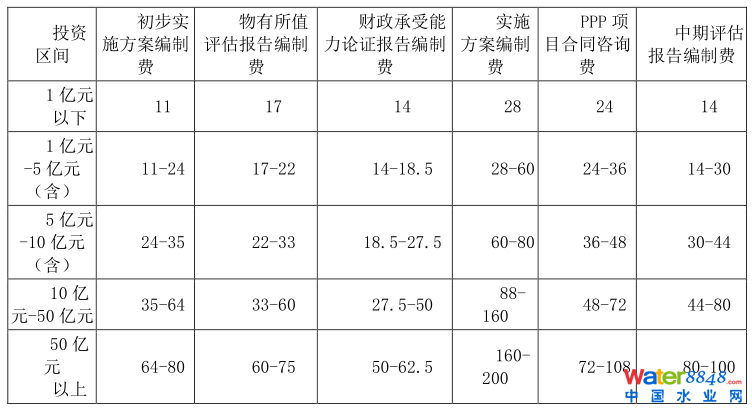 報告編制費、實施方案編制費、PPP 項目合同咨詢費、中期評估報告編制