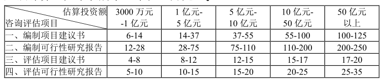 可行性研究報告編制費基價根據估算投資額在相對應的區(qū)間內用插