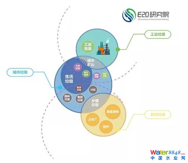 E20研究院將固體廢物按照其來源不同劃分為工業(yè)源、城市源和農村源三類。與“無廢城市”建設的重點區(qū)域相匹配,固廢綜合管理體系的建設對三大來源的固體廢物均有相應的指標要求。