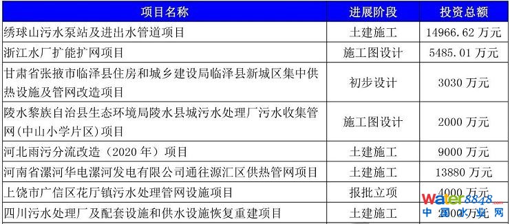 2020年8月份最新全國擬建在建自來水廠、城市管網(wǎng)項(xiàng)目 污水管網(wǎng)提升改造一期項(xiàng)目(EPC)