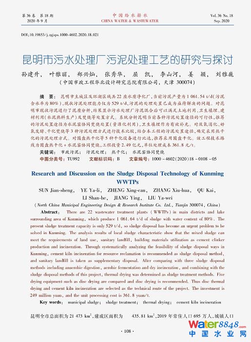 原標題:云南省昆明市污水廠污泥處理工藝的研究與探討