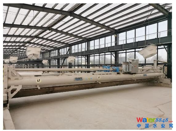 該項(xiàng)目處理脫水污泥量300t/d(進(jìn)泥含水率約70%),污泥來(lái)源為市政污泥,經(jīng)過(guò)太陽(yáng)能干化系統(tǒng)后,污泥可以回收制磚。項(xiàng)目主體設(shè)備采用2臺(tái)HUBER SRT污泥翻刨機(jī)。