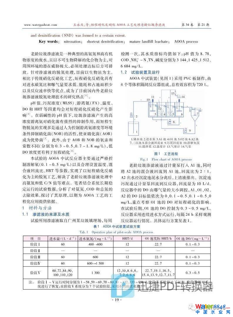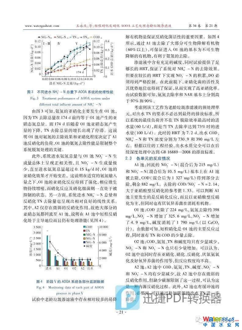 短程硝化反硝化AOOA工藝處理老齡垃圾滲濾液 作者: 王永慶 1 , 陳振國 1 , 汪曉軍 1 , 簡磊 2 , 陳靜 1 , 陳曉坤 1 (1.華南理工大學(xué)環(huán)境與能源學(xué)院,廣東廣州510006