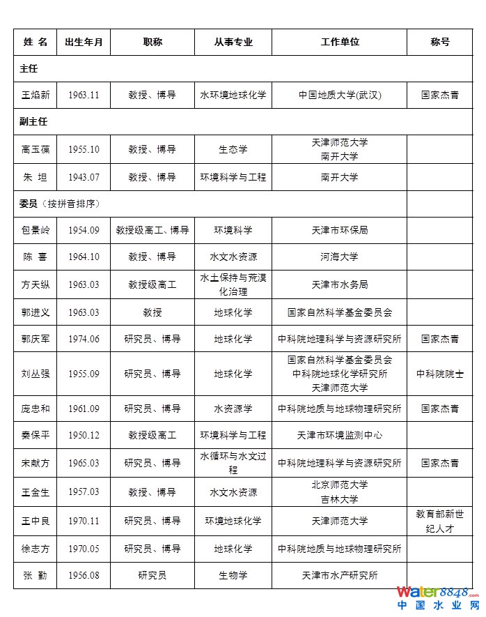 天津市水資源與水環(huán)境重點(diǎn)實(shí)驗(yàn)室學(xué)術(shù)委員會(huì)組成人員