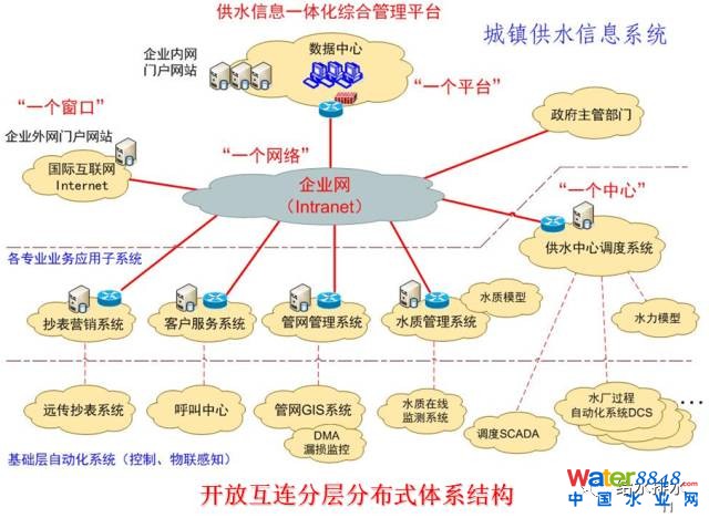 圍繞供水企業(yè)中心任務(wù),建設(shè)以供水調(diào)度為中心的生產(chǎn)指揮系統(tǒng),即“一個(gè)中心”,整合與集成廠站DCS、管網(wǎng)GIS、SCADA、抄表營(yíng)銷(xiāo)系統(tǒng)、實(shí)時(shí)動(dòng)態(tài)水力模型、輔助調(diào)度決策、生產(chǎn)管理等系統(tǒng),形成優(yōu)化成本、智慧節(jié)能減排體系,統(tǒng)管、優(yōu)化供水生產(chǎn)全程,是智慧水務(wù)建設(shè)的核心。