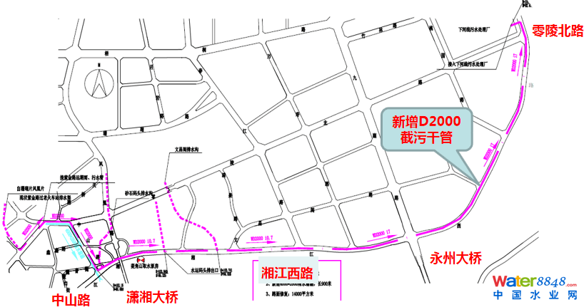 在湘江西路建設(shè)時新增一根直徑2米的截污干管(新增為主,原有為輔),雨污分流,建成后將污水統(tǒng)一收納至下河線污水廠,解決環(huán)保問題。綜合管線同步實施到位(雨污水、強弱電、燃氣等),釋放土地。