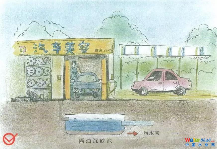 √汽車修理、洗車排放的污水經(jīng)隔油沉砂池處理后排入市政污水管道