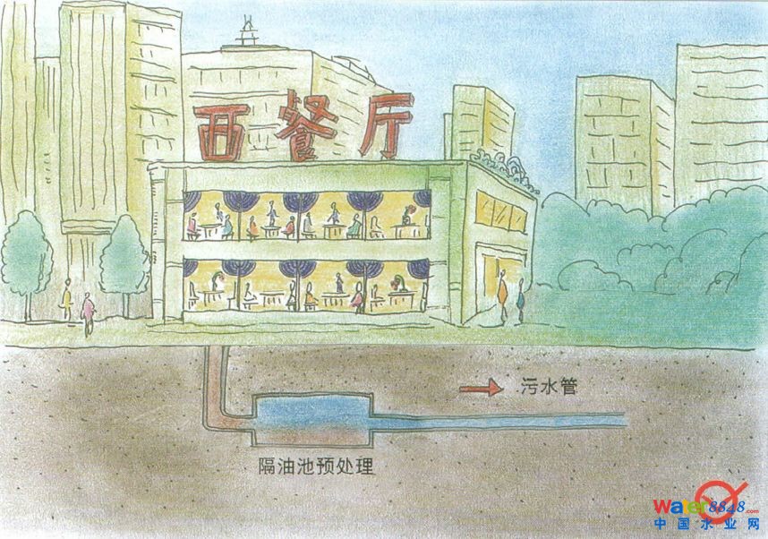 √餐飲業(yè)排放的污水經(jīng)隔油池預處理后排入市政污水管道
