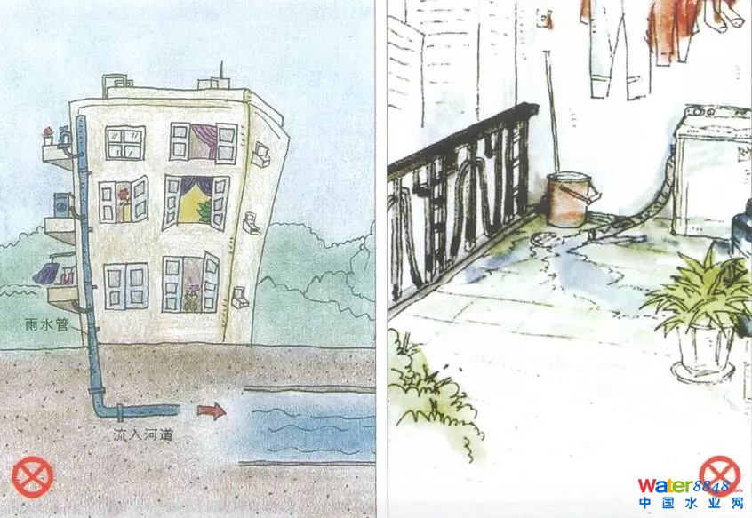 正確排水你我他 合法的排水行為 √小區(qū)陽臺洗衣廢水需排入市政污水管道