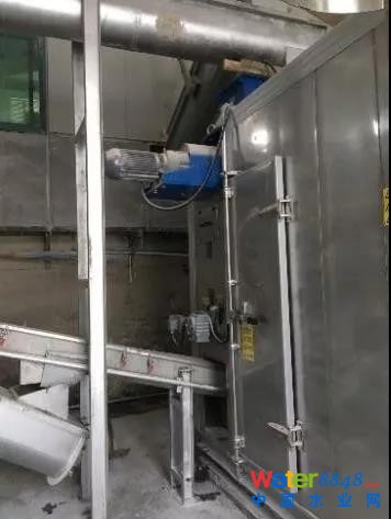 經(jīng)濃縮帶式一體機(jī)脫水后含水率為82~85%的一次脫水污泥,通過(guò)無(wú)軸螺旋輸送機(jī)輸送至TJDM混合機(jī)入料口。