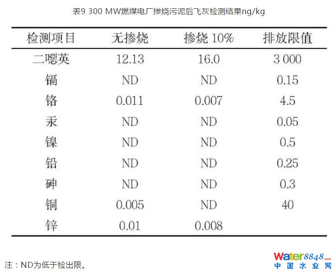 在摻燒10%污泥后的飛灰中,二惡英的濃度略有增加,從12.13 ng/kg增至16.0 ng/kg,但遠(yuǎn)遠(yuǎn)低于國家控制標(biāo)準(zhǔn),摻燒后所產(chǎn)生的影響很小。
