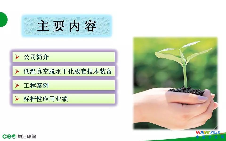 公司是1998年成立的,目前在新三板掛牌,自主研發(fā)的低溫真空水脫水干化成套技術(shù)裝備是08年立項(xiàng)的,填補(bǔ)了國(guó)內(nèi)外污泥脫水干化一體化的技術(shù)空白,達(dá)到了國(guó)際先進(jìn)水平。我們公司的業(yè)務(wù)重點(diǎn)在兩個(gè)領(lǐng)域,一塊是污泥領(lǐng)域,還有一塊是廢氣治理領(lǐng)域。市政領(lǐng)域我們主要針對(duì)污水廠污水處理本身的臭氣治理,還有污泥的脫水干化;工業(yè)領(lǐng)域我們主要針對(duì)危廢污泥,還有VOC有機(jī)廢氣的高效新型凈化技術(shù)。