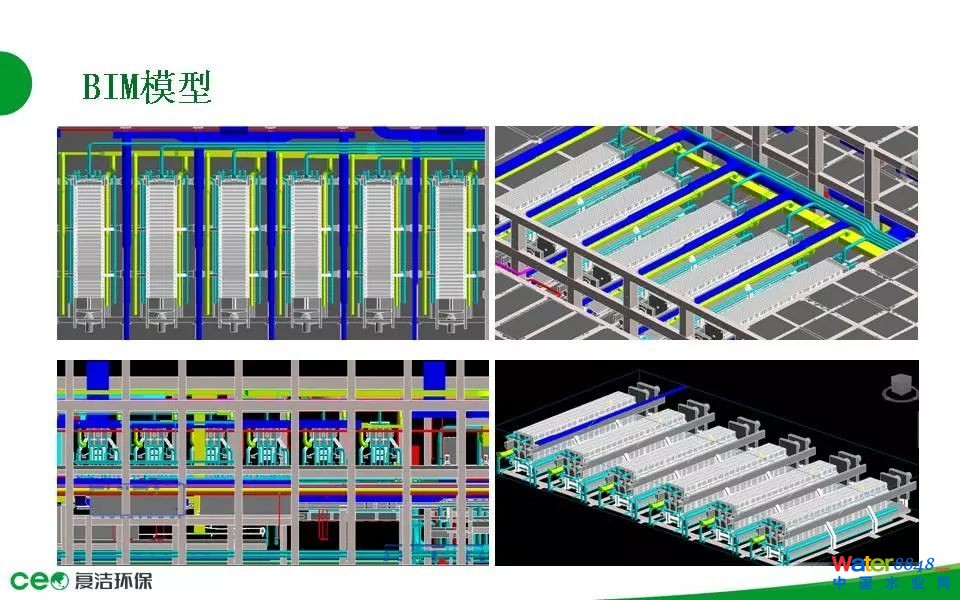 另外一個(gè)項(xiàng)目,也是上海目前在建的最大全地下項(xiàng)目——泰和污水處理廠,近期規(guī)模40萬(wàn)噸,遠(yuǎn)期規(guī)模55萬(wàn)噸,污泥處理量是480噸每天,最后的泥干化到40%以下,到石洞口進(jìn)行焚燒。這是我們做的BIM設(shè)計(jì)的效果。