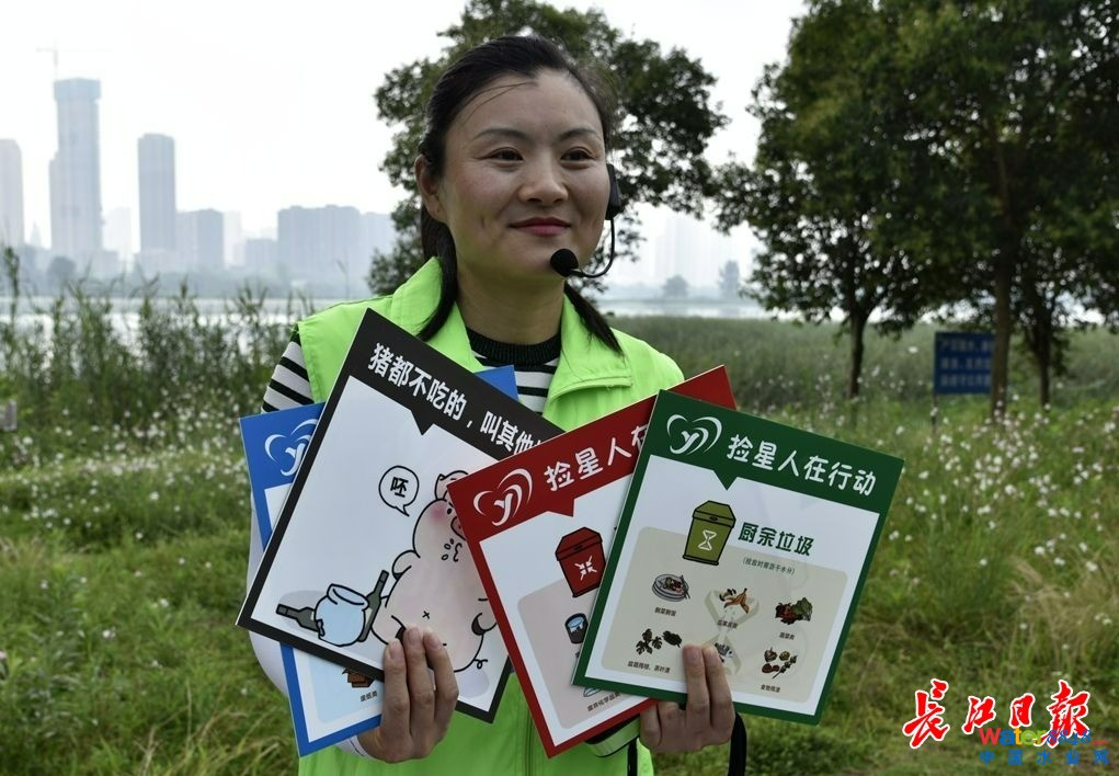 撿星人環(huán)保公益服務中心的肖金老師講解垃圾分類知識。長江日報記者戴紅兵 攝