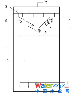 5-出水;6-三相分離器;7-沼氣;8-溢流堰
