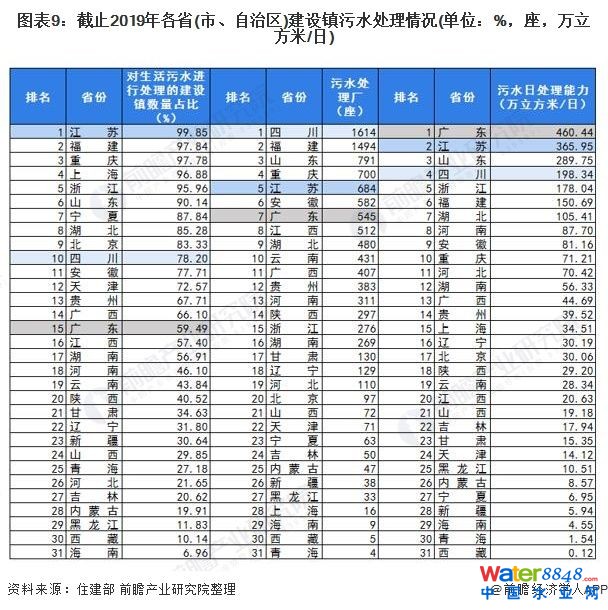 1、區(qū)域競(jìng)爭(zhēng):四川農(nóng)村污水處理廠數(shù)量最多,海南并未有鄉(xiāng)進(jìn)行生活污水處理