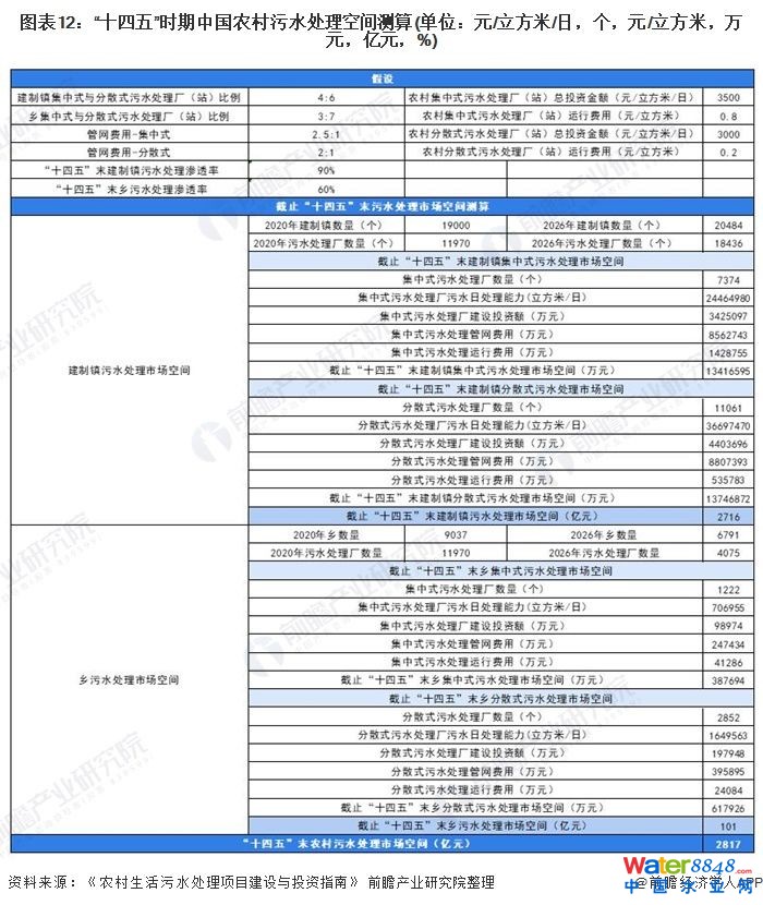 十四五”末建制鎮(zhèn)分散式污水處理市場(chǎng)空間=建制鎮(zhèn)分散式污水處理廠投資額+建制鎮(zhèn)分散式污水處理管網(wǎng)費(fèi)用+建制鎮(zhèn)分散式污水處理運(yùn)行費(fèi)用。