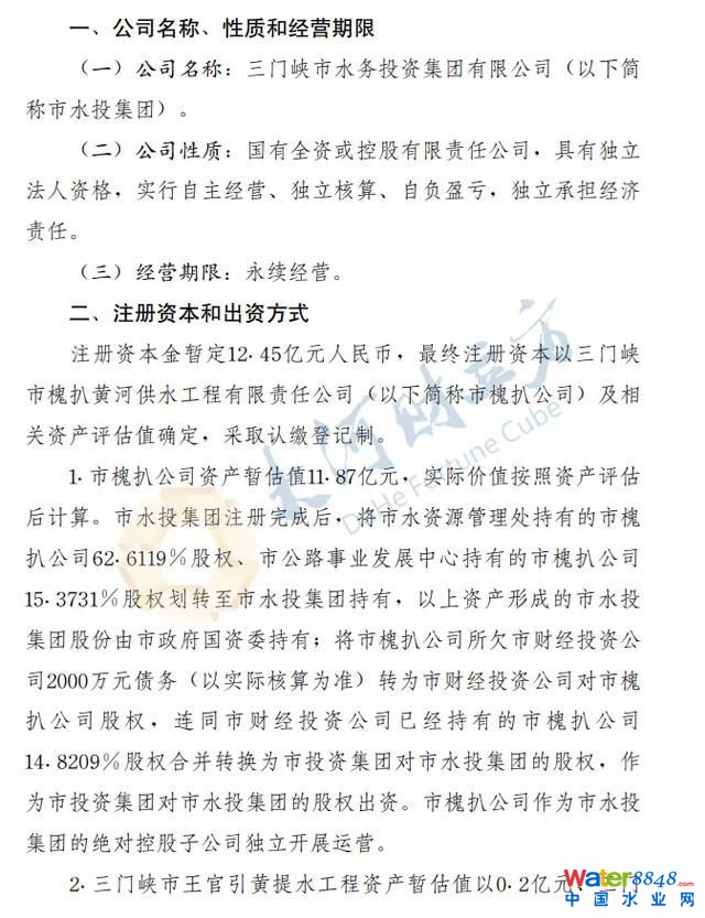 8月25日,三門峽市人民政府發(fā)布關于組建三門峽市水務投資集團有限公司的通知。