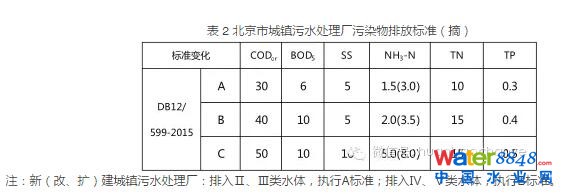 再看看天津(表3),這是2015年最新頒布的地方排放標(biāo)準(zhǔn),與北京標(biāo)準(zhǔn)相比,CODcr最低限值為30 mg/ L不是20 mg/L,其他指標(biāo)與北京標(biāo)準(zhǔn)類似。天津要求所有現(xiàn)有污水處理廠從2018年1月1號開始執(zhí)行這一標(biāo)準(zhǔn),而北京沒有明確的實施期限。這些地方標(biāo)準(zhǔn)的頒布應(yīng)該說有其必要性和合理之處,但個人認(rèn)為,這些標(biāo)準(zhǔn)中存在的一些誤導(dǎo)性問題也是非常值得關(guān)注的。