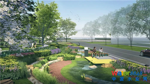 緩坡堤防改造增加堤防斷面,增強(qiáng)了堤防防洪能力,透水路面、生態(tài)樹(shù)溝、雨水花園等海綿城市設(shè)施實(shí)現(xiàn),小雨不積水、大雨不內(nèi)澇、水體不黑臭、熱島有緩解。