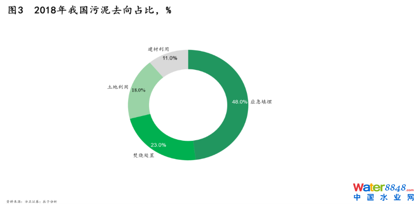 在此背景下,各級政府最終選擇先將污泥處理放一放,將有限資金優(yōu)先用于污水處理設(shè)施和管網(wǎng)建設(shè),這導(dǎo)致國內(nèi)“重水輕泥”的傾向明顯。(見圖1)。