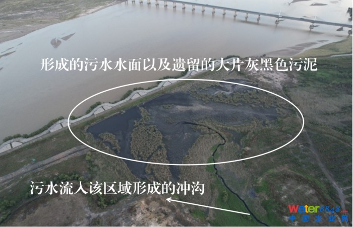 圖5 2021年11月4日,督察組暗查發(fā)現(xiàn),未經(jīng)處理的污水流入該區(qū)域形成較大水面,遺留大片灰黑色污泥