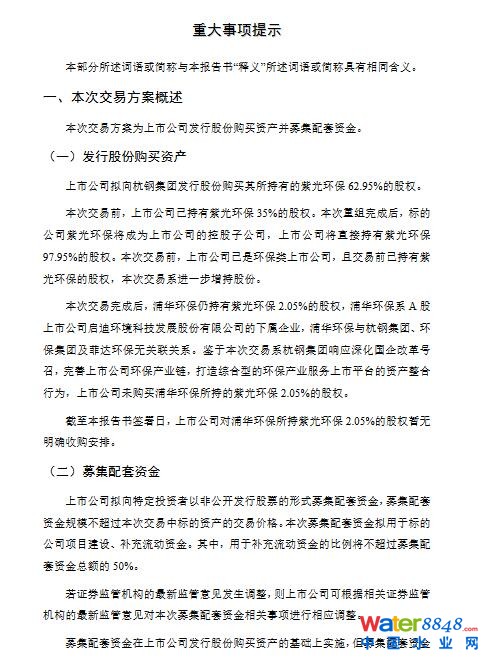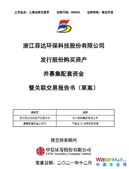12月16日,菲達環(huán)保公布發(fā)行股份購買資產(chǎn)并募集配套資金暨關(guān)聯(lián)交易報告書(草案),上市公司擬向公司控股股東杭鋼集團發(fā)行股份購買其所持有的紫光環(huán)保62.95%的股權(quán)。