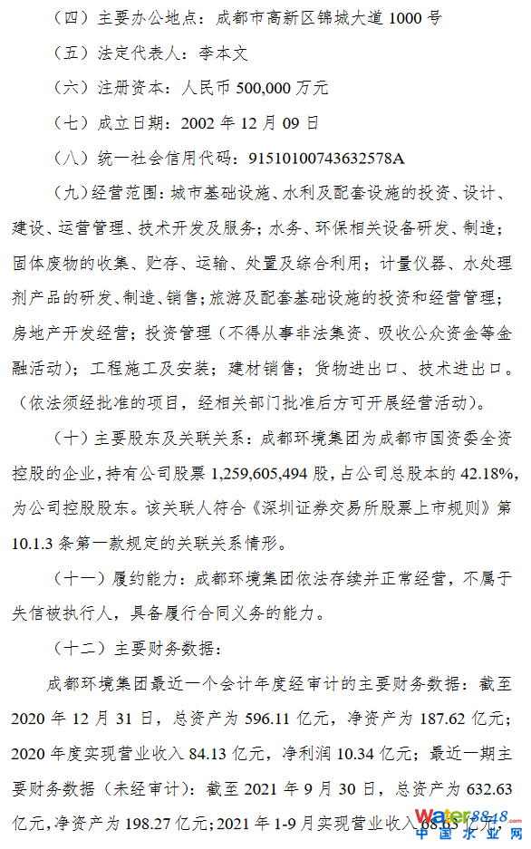 所屬頻道: 水處理  關鍵詞:污水處理廠 成都環(huán)境集團 興蓉環(huán)境