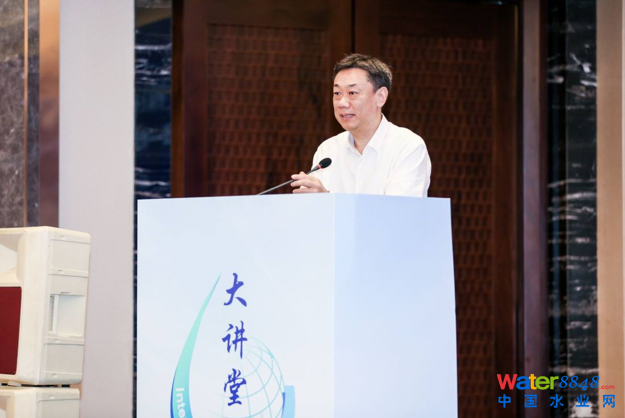 東莞市政府調(diào)研員馮彬發(fā)表致辭。馮彬介紹了東莞市近幾年在水工業(yè)領(lǐng)域的現(xiàn)有成績(jī)和在“雙碳目標(biāo)”下的發(fā)展展望,并表達(dá)了東莞市政府對(duì)大講堂活動(dòng)的肯定和支持。