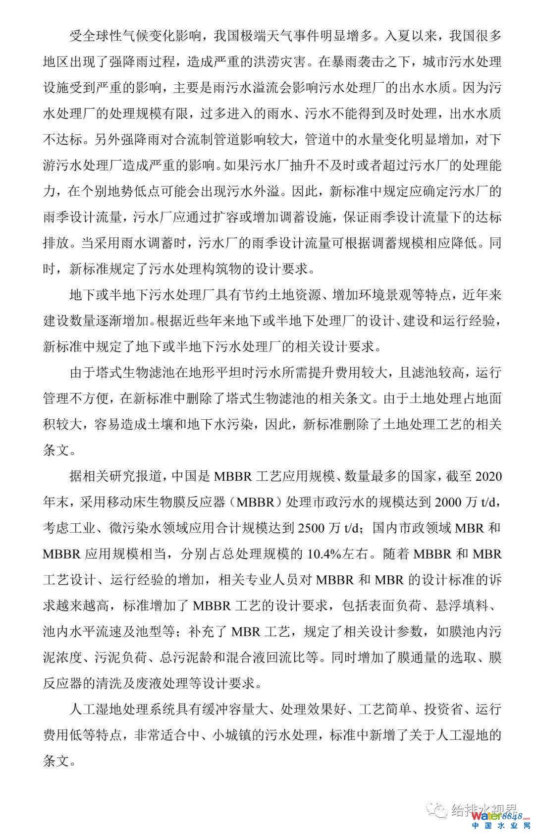 • 刪除了塔式生物濾池和土地處理等工藝,補(bǔ)充了膜生物反應(yīng)器(MBR)、移動(dòng)床生物膜反應(yīng)器(MBBR)和人工濕地等應(yīng)用廣泛且運(yùn)行可靠的工藝;