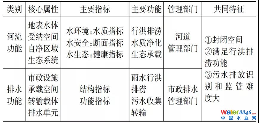天然河渠在轉(zhuǎn)變?yōu)榈叵掳岛,由于缺乏光照和充足的溶氧,河道的生態(tài)功能逐漸退化。為滿足周邊生產(chǎn)和生活需求,暗涵內(nèi)普遍存在內(nèi)部污水直排、合流制排口溢流排放、生活垃圾堆積及其他不利因素造成涵內(nèi)淤積和厭氧發(fā)酵,河流功能逐漸演變?yōu)榕潘δ,變化情況見表1。以上原因,造成的水質(zhì)惡化和重度黑臭成為暗涵化河道的典型特征。